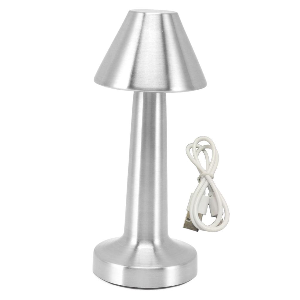 LED Table Lamp 3W 3 Colors Stepless Dimming USB Rechargeable Cordless LED Bedside Light Silver