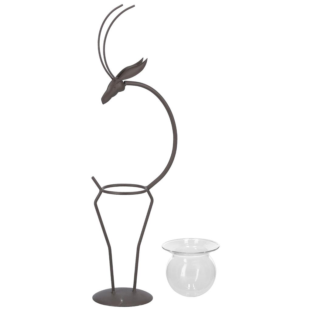 Hjortformad Smidesjärn Växtställ Transparent Glas Hydroponisk Växtvas för Vardagsrum Typ B