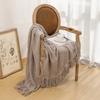 Karamellfärgad Geometrisk Pläd | Stickad Inomhus Utomhuspläd för Soffa Couch Stol Säng | Höstdekor