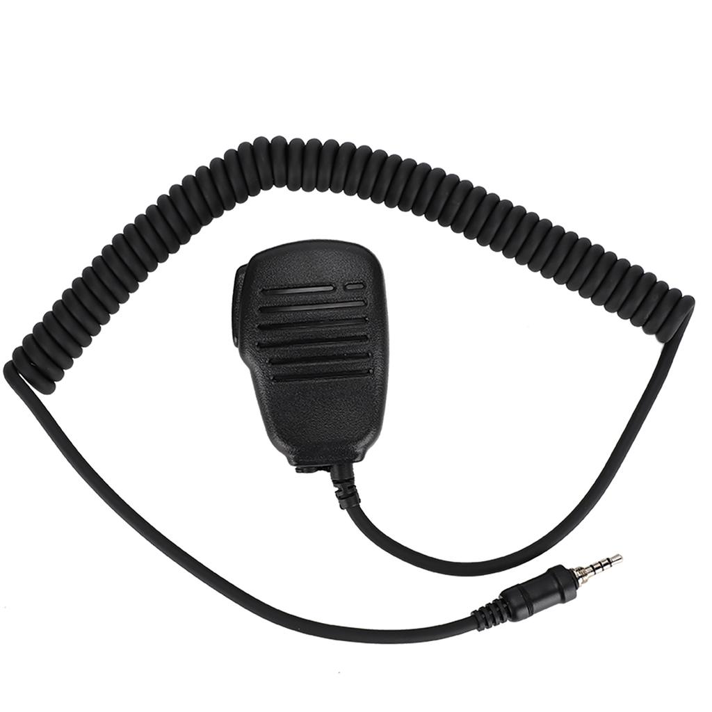 The handheld speaker mic has a small clip, you can hold it on your hand or hang it on your shoulder.