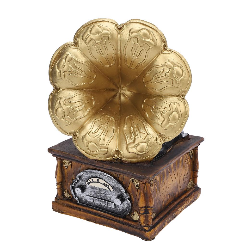 Modell Fonograf Retro Grammofon Skivspelare Harts Prydnad Dekoration Fotorekvisita Guld