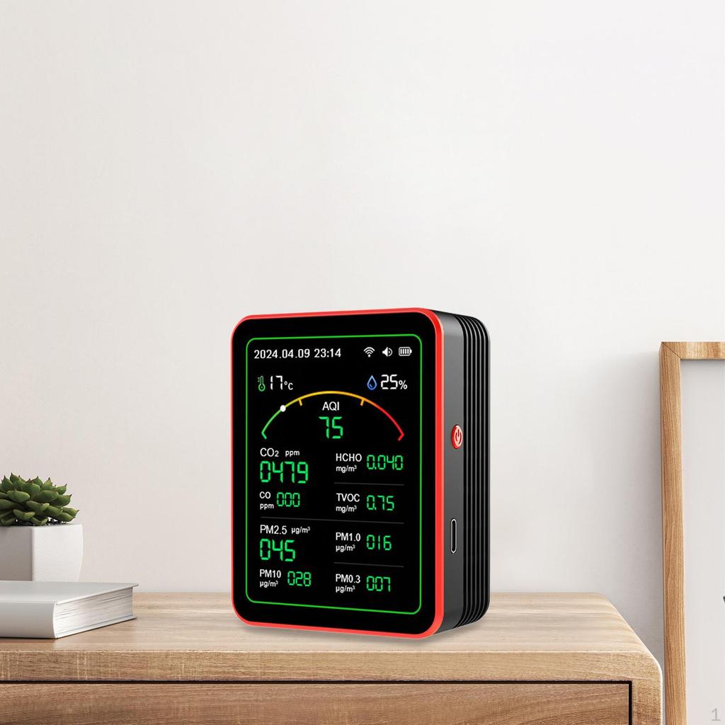 - 【Comprehensive Air Quality Monitor】: This 15 in 1 air quality detector is equipped with multiple high accurately sensors, capable of detecting 10 different air quality parameters including CO, CO2, formaldehyde (HCHO), TVOC, and various PM particles (0.3, 1.0, 2.5, and 10). It provides fast and accurate reading down to the thousandth unit