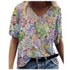 Women's Summer New V-neck Floral Positioning 3D Printed Short Sleeved T-shirt