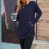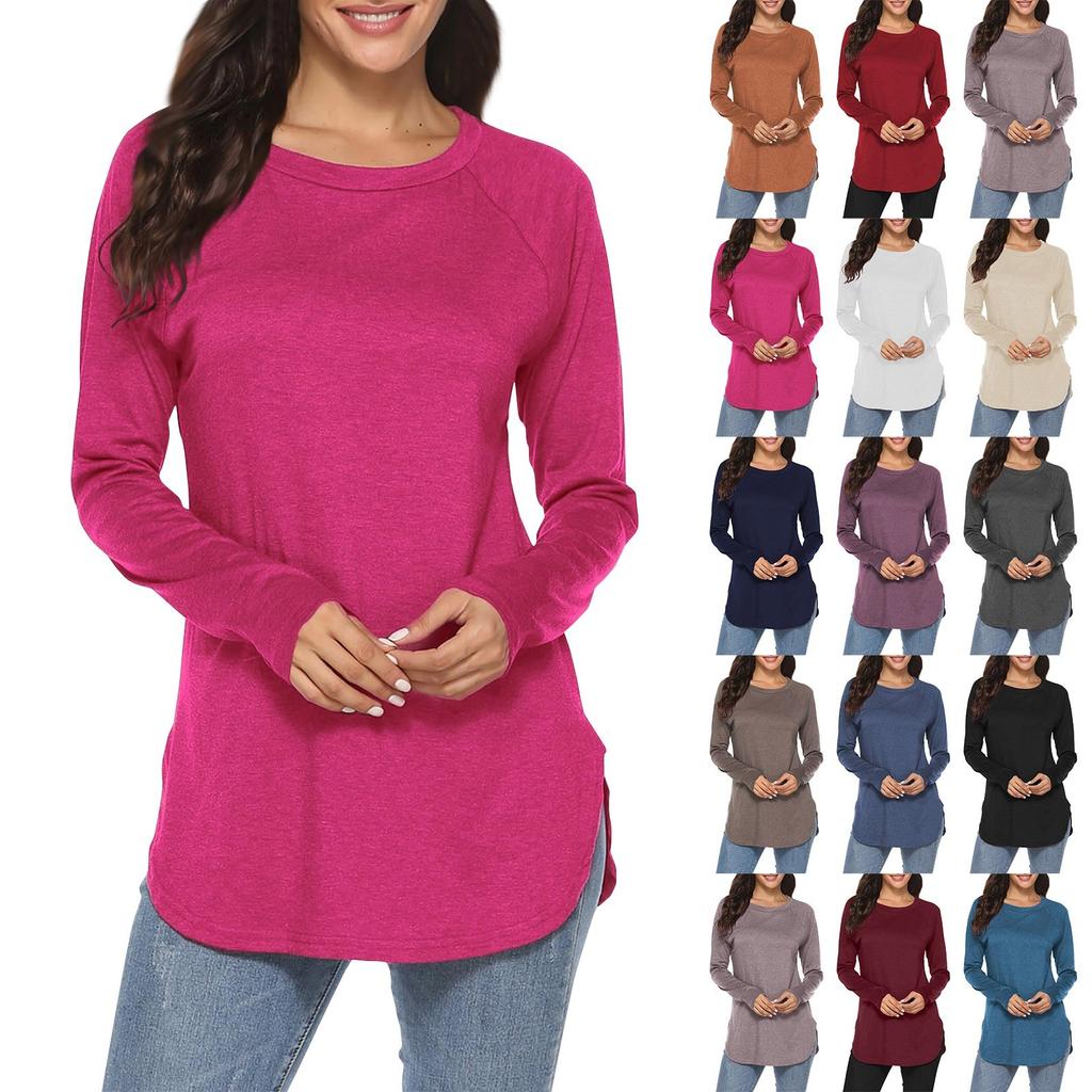 Dam Enfärgad Långärmad Rundhals Slim Fit Underdel Casual Pullover Topp