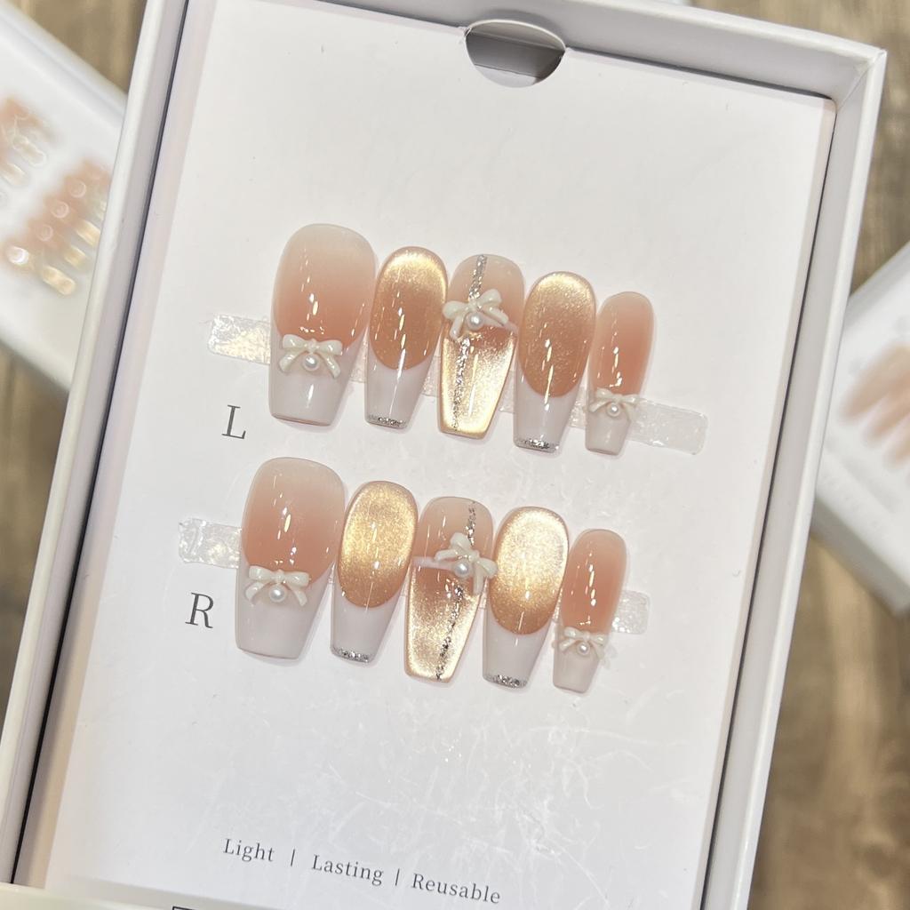 Xiaoxiangfeng Cat Eye Nail Art Gentle White French Bow Temperament Princess Wears Armor Handmade Armor