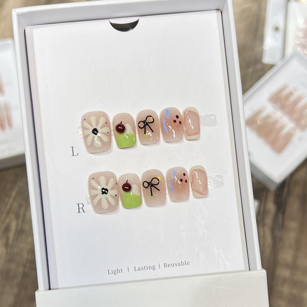 Dopamine Summer Nail Art Hand-painted Cream Style Cute Short Pure Hand-made Armor Blush To Make It Look White