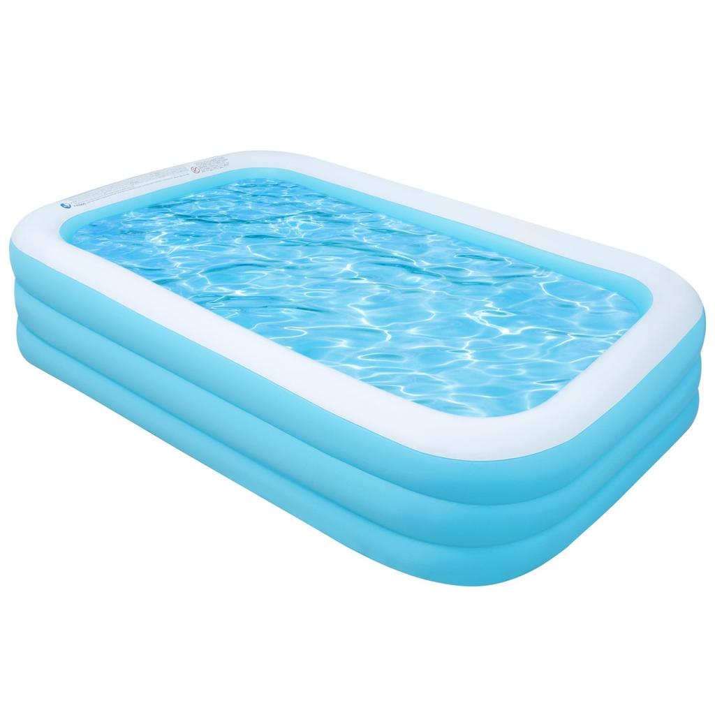 [Product Specifications] Pool size (outer diameter): (approx.) Width 305cm x Depth 183cm x Height 56cm, Size (inner diameter): (approx.) 248x151x56 cm, Material: PVC Type: 3-layer 3-chamber. Set contents: Pool * 1. The pool does not come with an air pump, please purchase it separately. This home pool comes with a 1-year worry-free warranty from the date of purchase. If you have any problems, please contact us at any time, our professional after-sales service team will provide you with a 100% satisfactory solution.