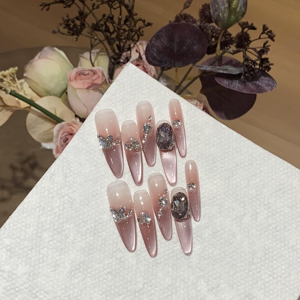 Pure Pink Gradient Side Light Cat Eye Oblique Edge Broken Diamond K9 Oval Diamond Nine Purple Fire Armor Piece