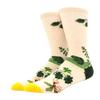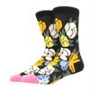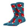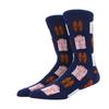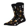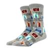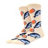 Roliga glada herrstrumpor med grafisk design, kammad bomull, omelett, groda, galen klocka, lax, majs, fågel, fisk, strumpa, julklapp