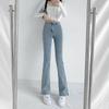 Vår bantning Hög midja Jeans Dam Blå Päronformade Vida Ben Byxor Trendiga