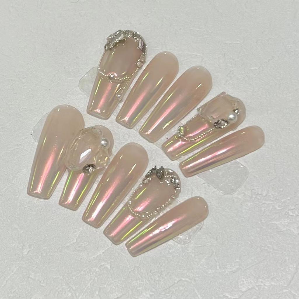 Elf Princess Wearing Armor Plate Handmade Aurora French Magic Mirror Powder Manicure Finished Product Repeatable Armor Plate
