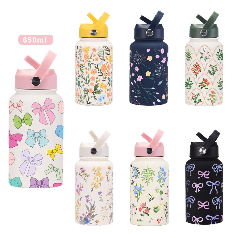 650Ml Sports Kettle Portable Handle Straw Water Cup Stainless Steel Beauty Mouth Printed Cup