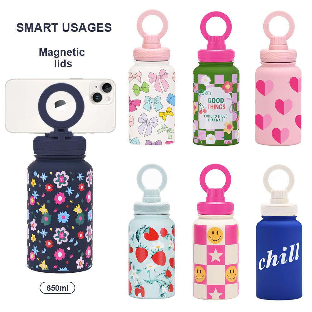 650Ml Large Mouth Thermos Cup Stainless Steel Sports Water Cup Mobile Phone Magnetic Suction Bracket With Printed Water Cup
