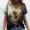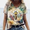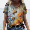 Dam T-shirt med retro bitryck Naturlandskap V-ringad topp Kortärmad tröja Lös Vardaglig design Kläder