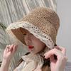 Straw Hat Women's Summer Lace Tied Beach Hat Beach Vacation Sun Protection Hat Strap