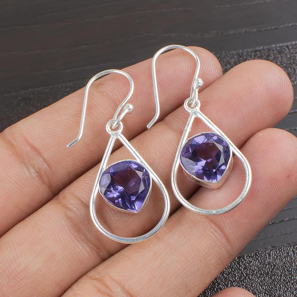 Iolite Gemstone Jewelry, 925 Solid Sterling Silver Earrings, Handmade Balancing Jewelry For Wedding Gift