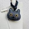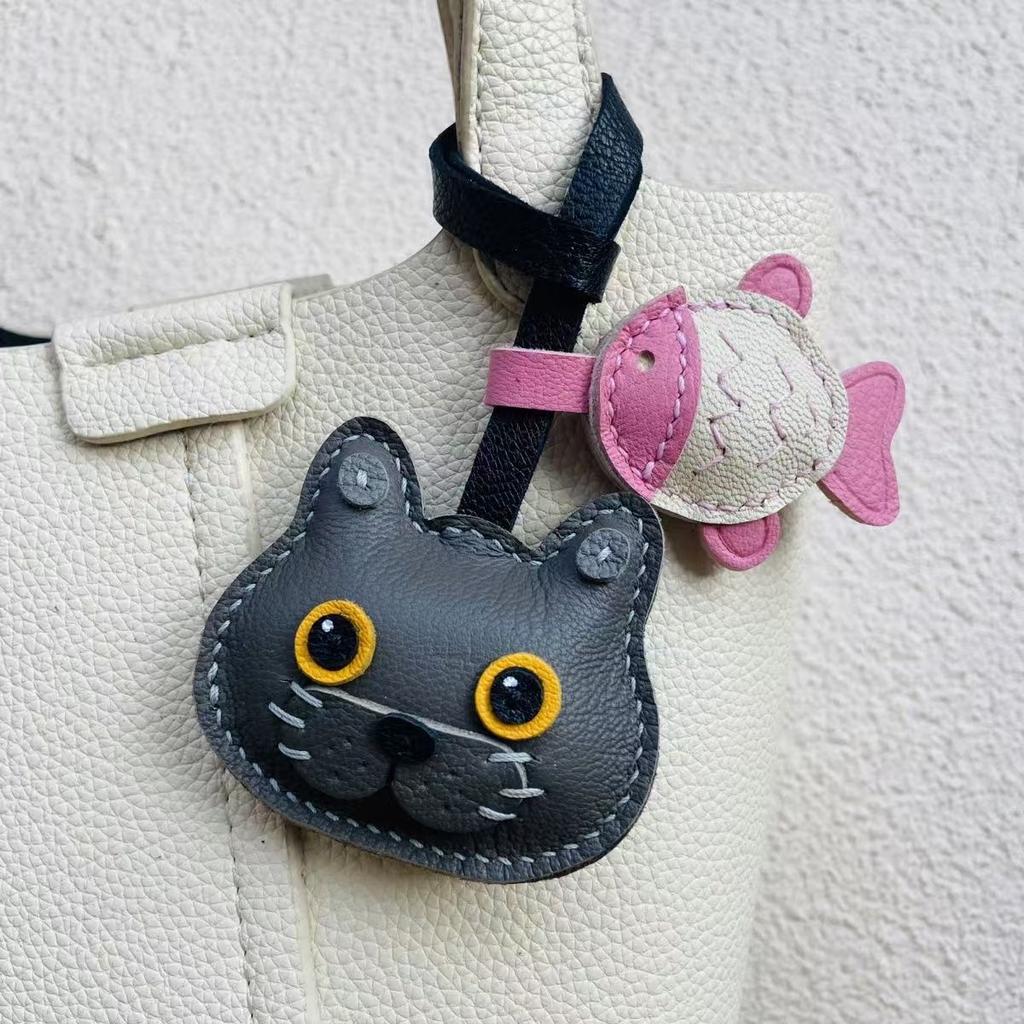 Handmade Grey Sheepskin Leather Cat Keychain - Cute Kitty Bag Charm, Genuine Leather Purse Accessory Gift for Women