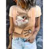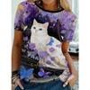 Women's round neck T-shirt summer casual fashion short sleeved top 3D cat print animal pattern women's clothing