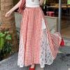 Plaid Lace Skirt for Women In Summer Korean Style Slim Design A-line Long Skirt