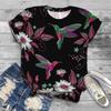 Women Summer T Shirt Trend Bird Print Retro Fashion Short Sleeve Tees Casual Printed Tops