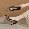 Premium leopard print brown classic women's pointed tip thin heel single shoes temperament thin new women's single shoes