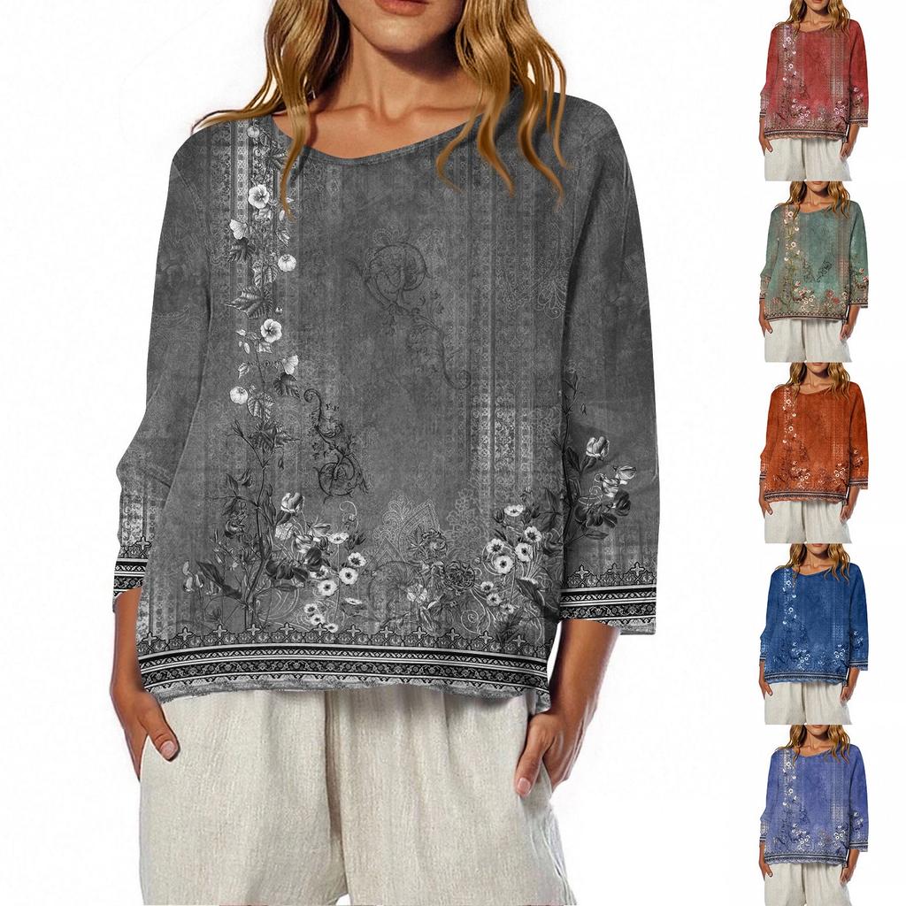 Dam O-ringad 3/4-ärmad tryckt topp T-shirt