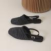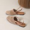 Tjock klack och grund mun halmvävd väska huvud bakre tomma sandaler damskor vår och sommar 2025 nya platt botten en-ords sandaler