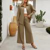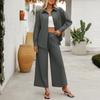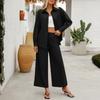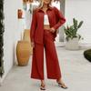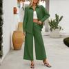 Dam Lös Casual Vårkofta Långärmad Skjorta Vida Ben Byxor Tvådelat Set