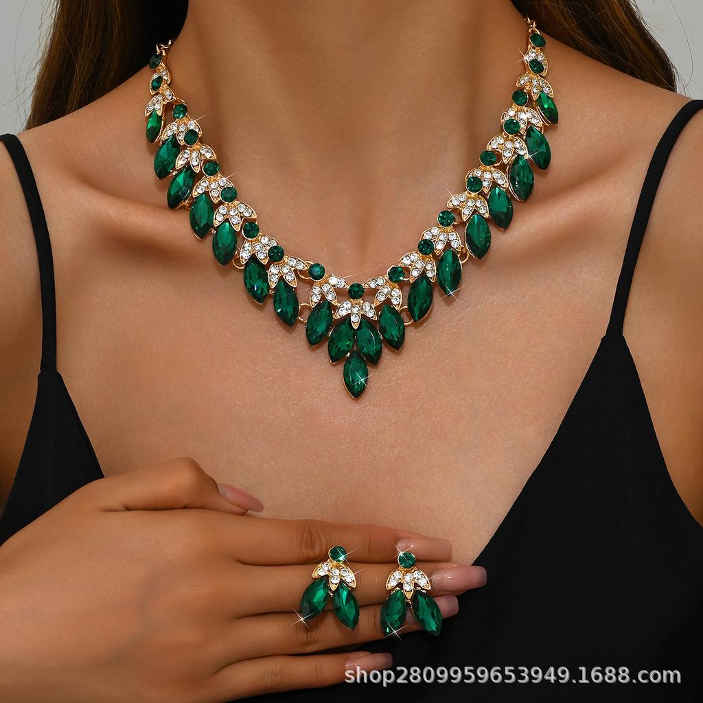 Dam Smycken Kristall Diamant Halsband Örhängen Set Kort