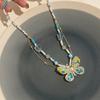 Pärlinlagd diamantfjäril pärlförsedd hänghalsband lätt lyx temperament hög känsla nyckelbenskedja nischmode mångsidiga smycken