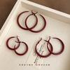 Ankola red round plain ring earrings retro Hong Kong style high-end earrings light luxury temperament versatile earrings