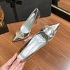 Nya strassknappar, smala klackar, spetsiga silverhögklackar, societets temperament mångsidig mode lätt mun enkelskor