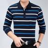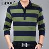 Vår Höst Randig Casual Mode Polotröjor Män Långärmad Lös Casual Toppar All Match Pullover Koreanska T-shirts Herrkläder