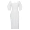 Omfamna elegans med denna kvällsklänning inspirerad av Frankrike, med en sofistikerad fyrkantig urringning och charmiga puffärmar.. Designad för att framhäva din silhuett, den höga midjan ger en smalnande effekt, medan det lyxiga polyestermaterialet säkerställer komfort och stil.. Perfekt för att göra ett elegant uttryck vid alla formella evenemang.