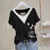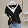 Elevate your summer wardrobe with this chic Korean-style T-shirt, designed for both comfort and style. Made from high-quality cotton, this top is perfect for warm weather, offering a breathable and lightweight feel. The V-neck design adds a touch of elegance, while the short sleeves keep you cool and relaxed. Its loose fit provides a slimming effect, flattering all body types, and the frayed decoration brings a trendy, laid-back vibe. Available in plus sizes, this versatile top effortlessly transitions from casual day outings to evening gatherings.