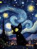 Abstrakt Stjärnhimmel och Svart Katt Affischer och Tryck Canvas Målning Väggkonst Bilder För Vardagsrum Hem Mural Dekoration Gåva