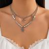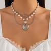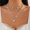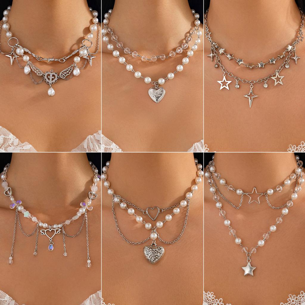 Sött och coolt kärlekspentagramhänge, fransad halsband, pastorala imitationspärlor gotiska smycken för kvinnor