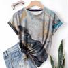 Dam T-shirt Casual Sommar Rund Hals Kortärmad 3D-tryckt Elementmönster Gradient Skjorta