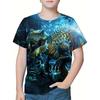 Sommar Rundhals 3D Dinosaurie Tryckt Topp Trendig Casual Kortärmad Barn Pojk T-shirts