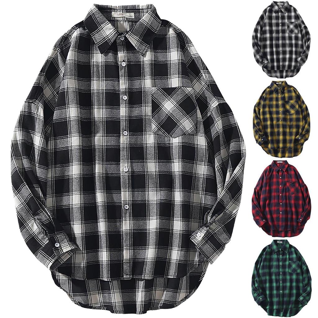 Herr Casual Mode Rutig Tryck Lös Kavaj Långärmad Skjorta Toppar Blus
