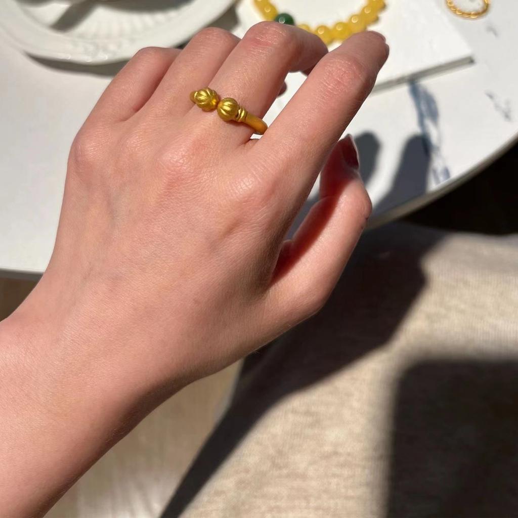 Ancient gold pumpkin head ring fashionable retro light luxury index finger ring opening adjustable jewelry