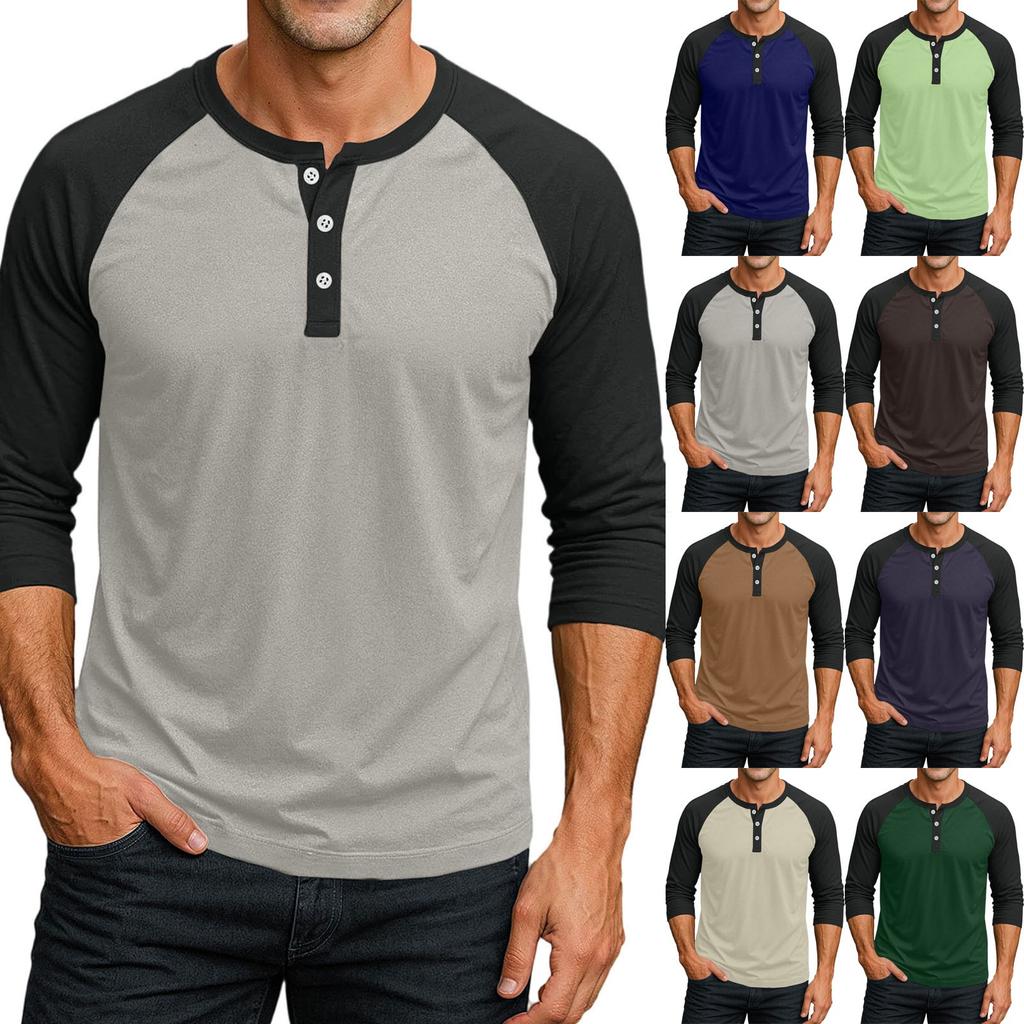 Herrskjorta med kontrastfärgad raglanärm i 3/4 längd