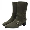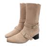 Höst och vinter bältesspänne två bär mediumstövlar mocka tjock klack läderstövlar fyrkantig tå tunna stövlar medelhög klack Martin boots