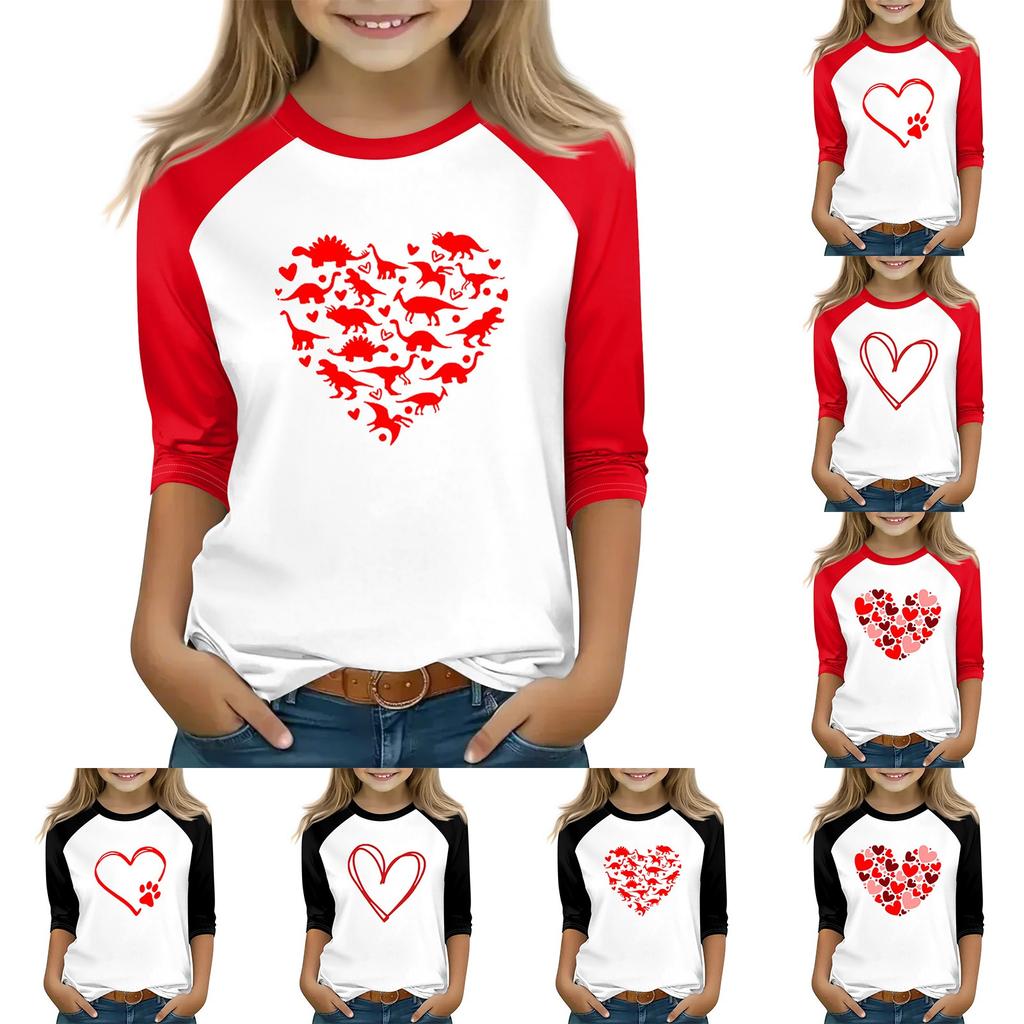 Toppar för unga flickor 4-16 år Rund hals 3/4 ärm T-shirts Trendiga toppar Outfit T-shirts