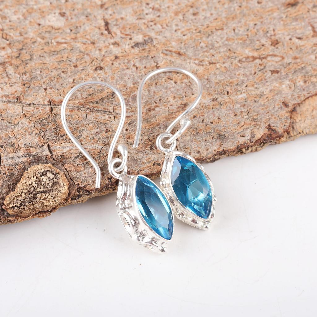 Örhänge med schweizisk blå topas, ädelstensörhänge, örhängen i 925 sterlingsilver, handgjorda smycken, silversmycken som gåva