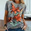 Women's colorful rose printed T-shirt, summer popular short sleeved shirt, round neck casual loose T-shirt, streetwear
