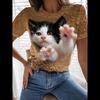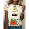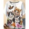 Summer Round Neck 3D Cute Cat Print Top Fashionable Casual Short Sleeved Women's T-shirts