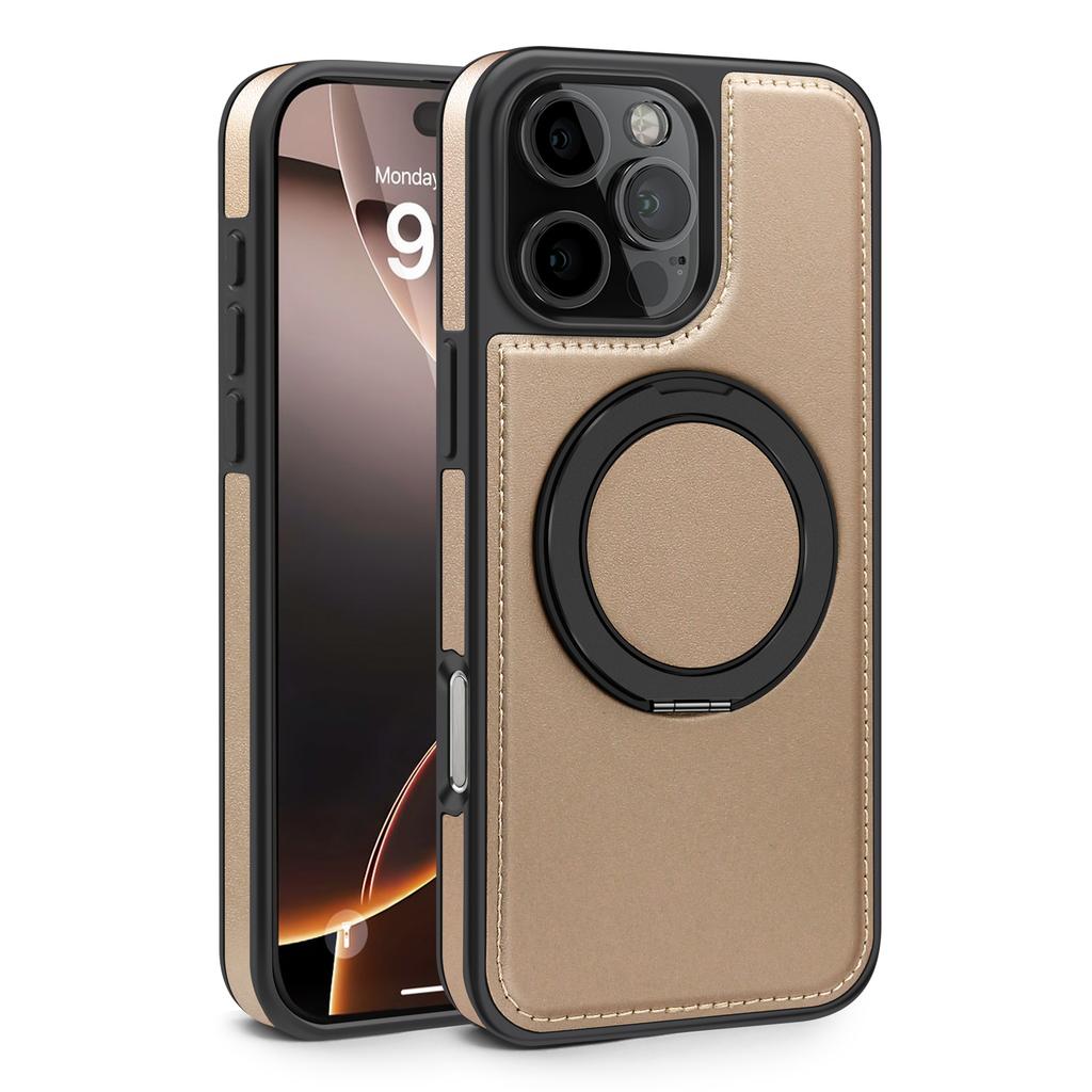 For iPhone 16 Pro Max Case with Ring Kickstand Compatible with MagSafe PU Leather Back Cover