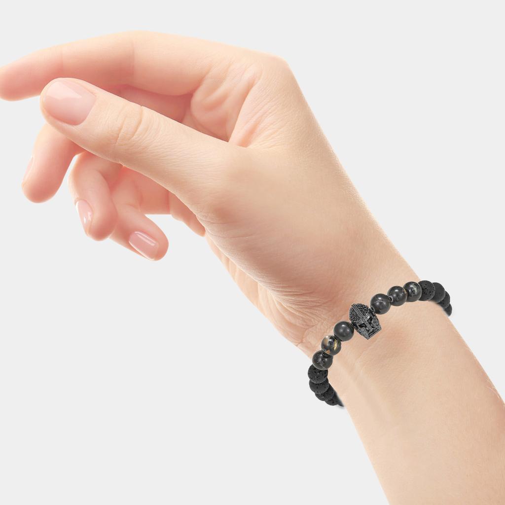 Roman Knight Helmet Beaded Bracelet with Lava Stones Unisex Fashion Accessory Zircon Texture Suitable for Any Occasion