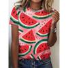 3D Vattenmelon Tryckta Dam V-ringade T-shirts Sommar Sval Kortärmade Toppar Mode Casual Lösa Pullovrar Kvinnliga T-shirts